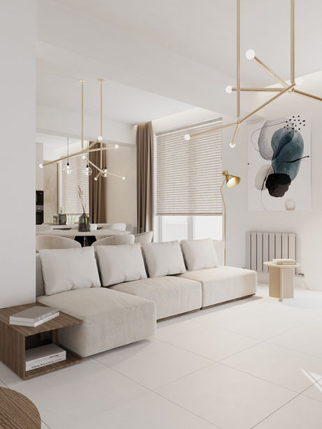 H αναδιαμόρφωση του χώρου προσεγγίστηκε με βάση τις ανάγκες των ιδιοκτητών, με κύρια προτεραιότητα του σχεδιασμού να αποτελούν οι καθαρές γραμμές και η απλότητα. Η τελική διάρθρωση της κάτοψης ολοκληρώθηκε μετά από σημαντικές καθαιρέσεις και ριζικές αλλαγές στη διάταξη αυτού του τυπικού αστικού διαμερίσματος. Στο σύνολο των χώρων υλοποιήθηκε μια ενιαία σχεδιαστική προσέγγιση, λιτή, σχεδόν αυστηρή, χωρίς τον συνδυασμό πολλών και διαφορετικών υλικών. Οι δύο βασικοί πυρήνες της καθημερινής ζωής χαρακτηρίζονται εμφατικά από το άνετο καθιστικό καθώς και τον λειτουργικό χώρο της κουζίνας. Στα υπόλοιπα δωμάτια ακολουθείται παρομοίως η λογική της εργονομίας για την οργάνωσή τους, αλλά και η ίδια κατεύθυνση σε επίπεδο υλικών, υφών και αποχρώσεων.