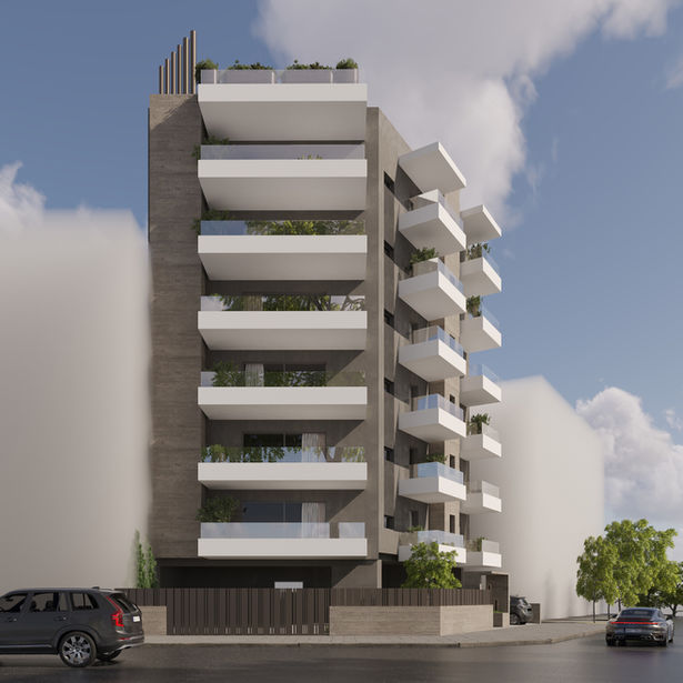 Οι ορθοκανονικές γεωμετρίες και η ρυθμική επαναληπτικότητα χαρακτηρίζουν την παρούσα πολυκατοικία, στοιχεία τα οποία, σε συνδυασμό με τις τραχιές επιφάνειες και τα επιμελώς επιλεγμένα φυτά, συνθέτουν ένα άρτιο αρχιτεκτονικά αποτέλεσμα που ακολουθεί τις αρχές του σύγχρονου design.